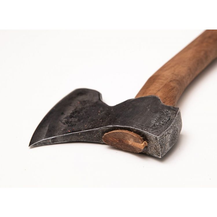 - Handle material: Hickory. Please note: the photos shown feature the walnut handle from the first limited release. All future production models will feature hickory handles. We will update photos as soon as we have the axes in stock.
